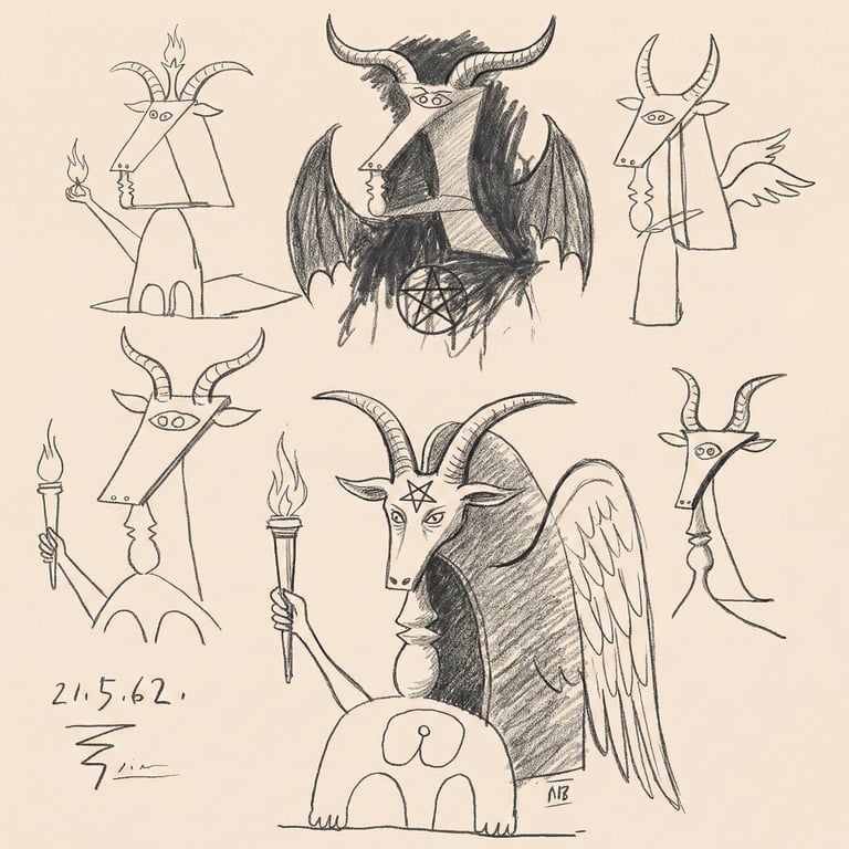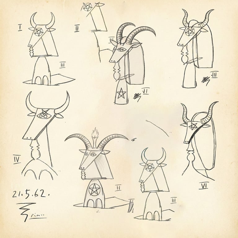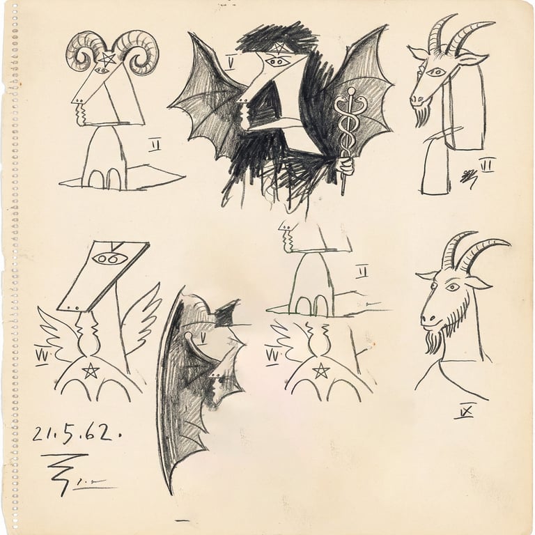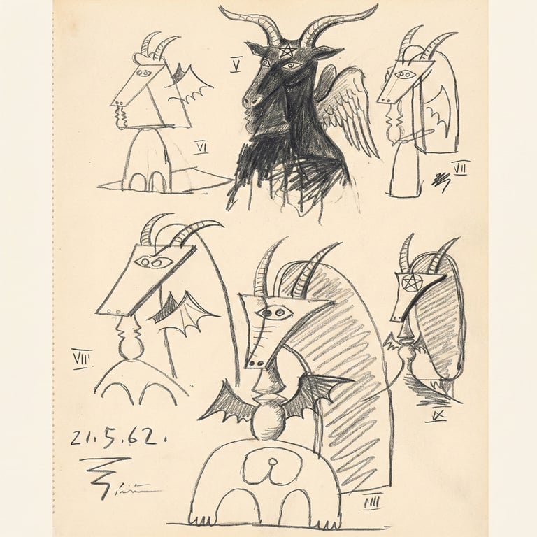 Explore Picasso’s hidden blueprints for the Daley Plaza Baphomet alongside chilling renditions from generations of esoteric artists.